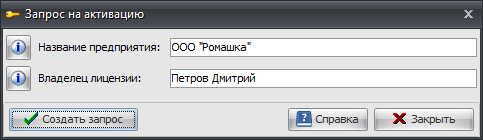 4. В новом окне укажите название своего предприятия и владельца лицензии. После этого нажмите кнопку «Создать запрос». Сохраните полученный текстовый файл.