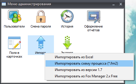 Пользователь может перенести данные в Fox Manager 2.0 BPA из других систем, например, из 1С.