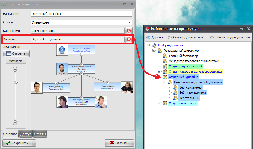 3.10.2 Редактор схем оргструктуры