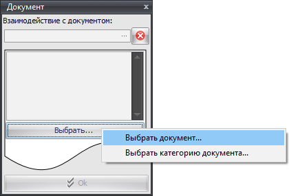 В карточке можно указать какое действие с ним происходит в данной функции (создание, использование, утверждение и т.п.), а также выбрать сам документ или категорию документов при помощи кнопки «Выбрать…»