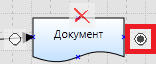 Добавление документа на схему процесса производится при помощи панелей инструментов по бокам или из всплывающего меню, которое возникает при наведении на активный блок в редакторе процесса. Документ расположенный слева от функции будет считаться входящим, а справа – исходящим.