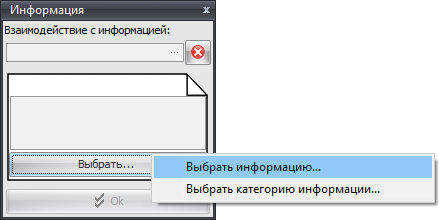 В карточке можно указать какое действие с информацией происходит в данной функции (передача, использование и т.п.), а также выбрать информацию или категорию информации при помощи кнопки «Выбрать…»