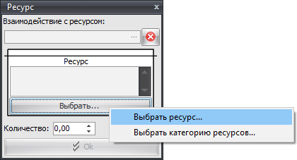 В карточке можно указать какое действие с ним происходит в данной функции (создание, использование и т.п.), а также выбрать ресурс или категорию ресурса при помощи кнопки «Выбрать…»