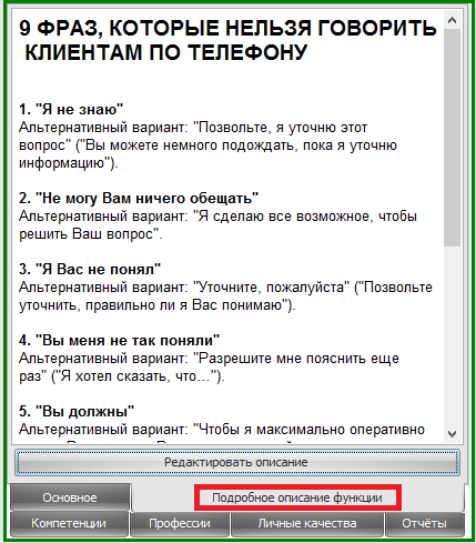 Во вкладке «Подробное описание функции» можно ввести дополнительное описание функции. В отличии от «Краткого описания», в этом поле поддерживается полноценное форматирование с использованием таблиц, рисунков и т.п.