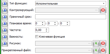 В поле «Контролирующий» можно указать должность или субъекты, которые не выполняют текущую функцию, но могут проверить результат её выполнения. Здесь следует указывать только выборочный контроль, который происходит время от времени, если же выполнение функции контролируется всегда на постоянной основе, то оставьте это поле пустым, а после данной функции создайте новую функцию контроля, которая будет выполняться после данной функции.