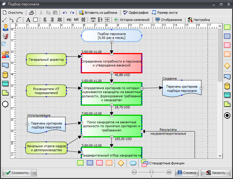 В программе используются две нотации для описания процессов на нижнем уровне: Fox Manager FlowChart и Cross Functional FlowChart