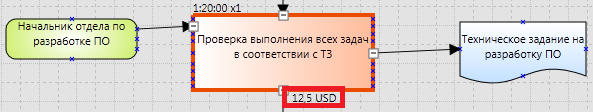 Если ресурс можно измерить, то в этой карточке можно указать сколько единиц данного ресурса расходуется при выполнении функции в процессе. Также программа может рассчитать стоимость использования ресурса в процессе в зависимости от времени использования или количества израсходованных ресурсов. Цена единицы ресурса, а также стоимость часа использования указывается в карточке на ресурс в справочнике ресурсов.