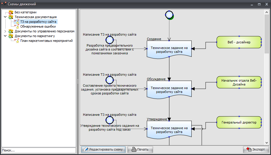 Справочник схем движения позволяет автоматически формировать схемы движения документов, софта/бд, ресурсов и информации в процессах.