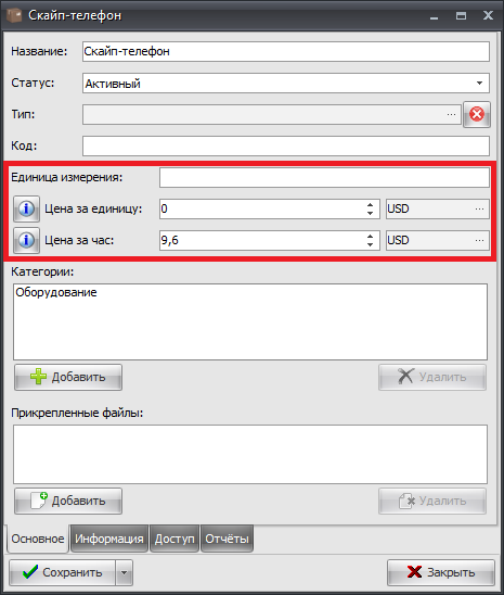 Цена за час – устанавливает стоимость часа использования ресурса. Подходит для таких ресурсов как: электричество, аренда чего-либо и т.д.