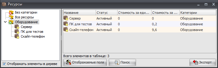 Справочник «Ресурсы» содержит ресурсы, которые предприятие потребляет или производит при выполнении функций в процессах, например, бумага, электричество, сырьё и т.п.