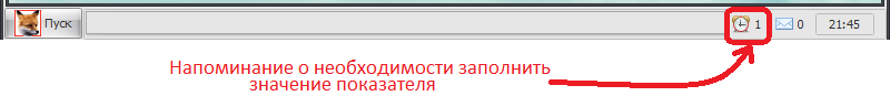 Просматривать и заполнять значения показателей можно прямо из карточки на соответствующий элемент или через меню «Контроль показателей». Напоминания о необходимости ввести значения отображается у пользователя на его рабочем столе.