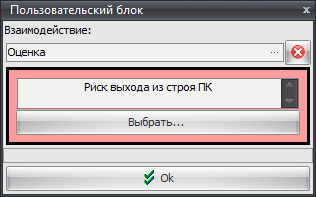 При создании нового блока в карточку автоматически добавляется поле «Взаимодействие» и кнопка выбора элемента пользовательского справочника.