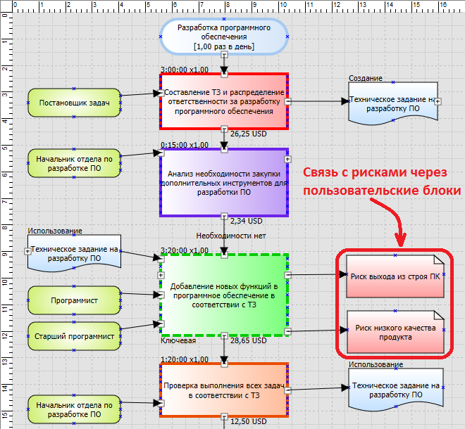 Помимо полей и справочников, пользователи могут добавлять собственные графические блоки в нотацию бизнес-процессов.