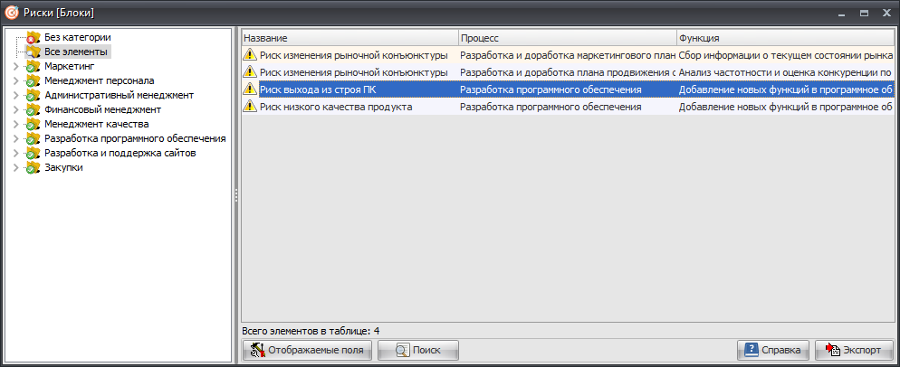 Обратите внимание, что сами блоки нельзя создавать из этого справочника, они создаются и заполняются в редакторе процессов, а здесь только отображаются в режиме просмотра.