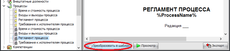 Обратите внимание, что часть шаблонов отчётов в дереве имеют значок замочка. Это стандартные шаблоны, которые не переносятся в карточки элементов и которые нельзя редактировать. Но вы можете преобразовать такой шаблон в обычный формат, для этого необходимо нажать кнопку «Преобразовать в шаблон»