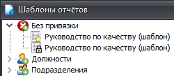 Иногда возникает необходимость сформировать отчёт, который нельзя однозначно привязать ни к одному элементу программы, например, «Руководство по качеству ISO 9001». Такие отчёты расположены в дереве под именем «Без привязки».