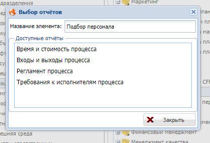 Для того чтобы получить доступ к выбору отчётов, необходимо выделить элемент и дважды кликнуть по нему левой кнопкой мышки.